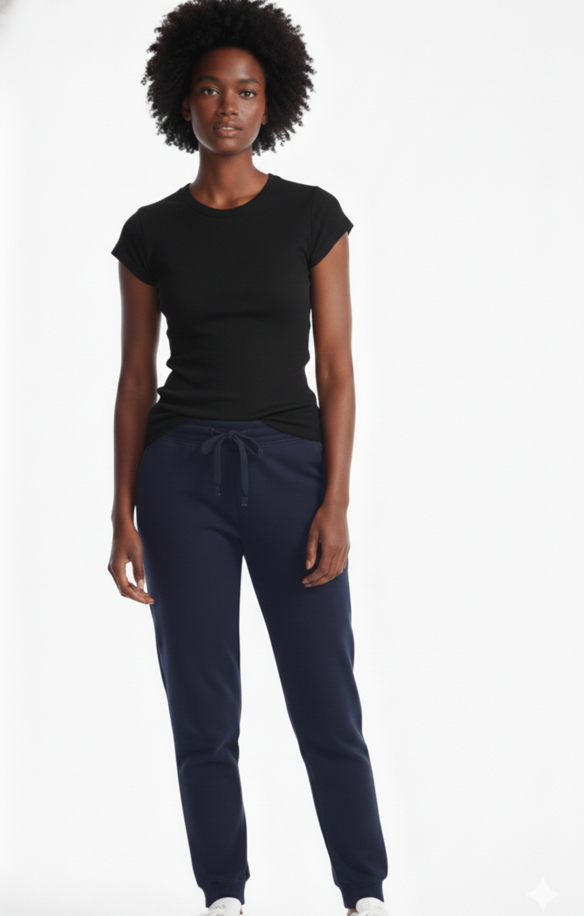 Designed with side pockets, an elastic waistband, ribbed cuffs, and a blue cotton drawcord for a relaxed, easy fit.